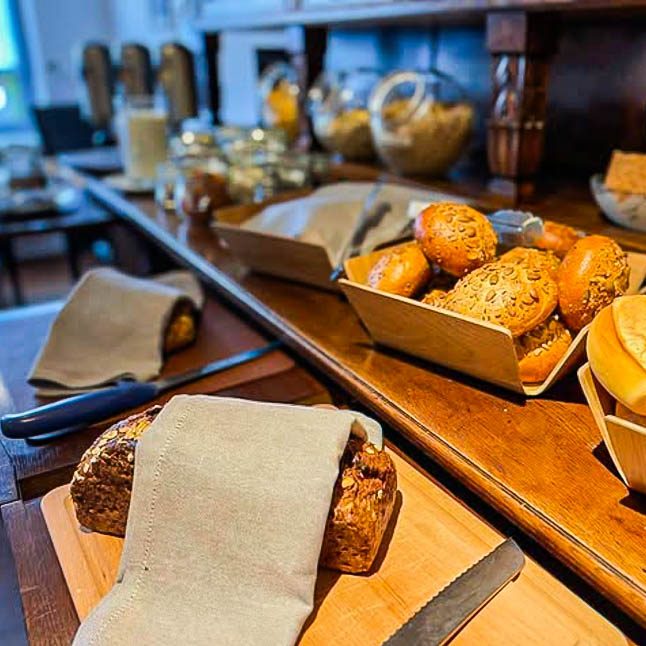 Bedienen Sie sich nach Herzenslust an dem gesunden, vitaminreichen Frühstücksbuffet mit regionalen Qualitätsprodukten.